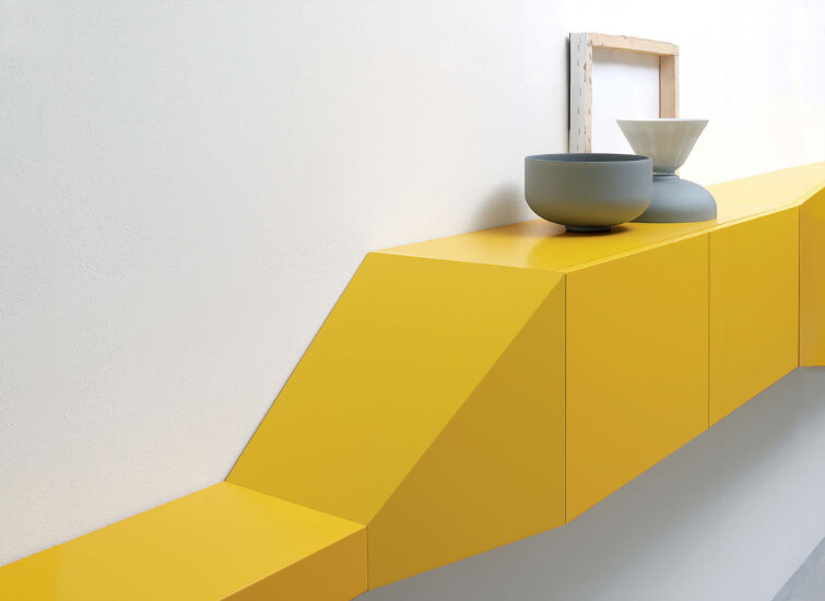 The Hillside Air Shelves are wall-mounted implements that serve as a bookcase or a storage/presentation element that holds any object or personal effect that you want to be displayed. The Arflex Hillside Air can be placed in any location with ease and is quite the versatile furniture piece. Its assembly is composed of lacquered MDF panels with several finishing options. The linear construct of these shelves provides your walls with geometric elements that exude sophistication and modernity: characteristics befitting any beautiful home. These traits ensure that the Hillside Air will elevate your interiors with its presence.