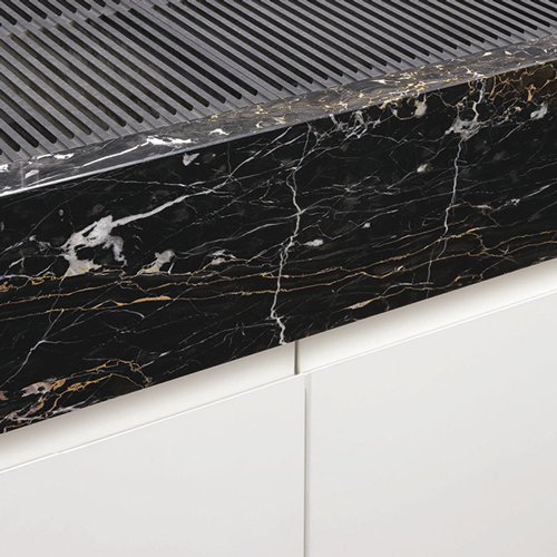 The materials for the doors are chosen alongside the countertop and often either recall the countertop’s color or play with chromatic and material contrast. The doors can be in steel, glass, laminate, lacquered or solid wood with particular relief and prominence of the veining.