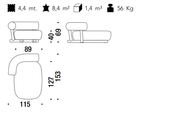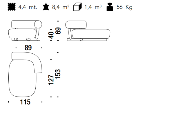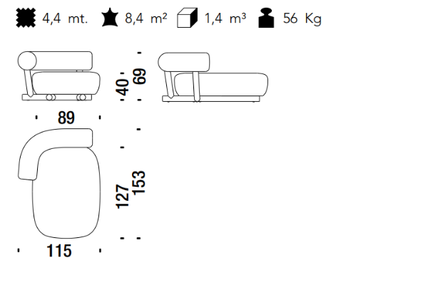 Measuring in 153x115x69 cm, the Moroso Pipe's size allows it to occupy any living room setting with ease. This product's backrest is oriented either on the left or the right side of its seating component. Aside from this product, there are also other items present within Moroso's Pipe collection of furniture pieces. This series also includes a side table with two measurements, an armchair, and a two-seater sofa. All of these items share the same signature look, giving this collection a uniform and lively appearance. You may acquire the entire set for uniformity, or you can use each element individually.