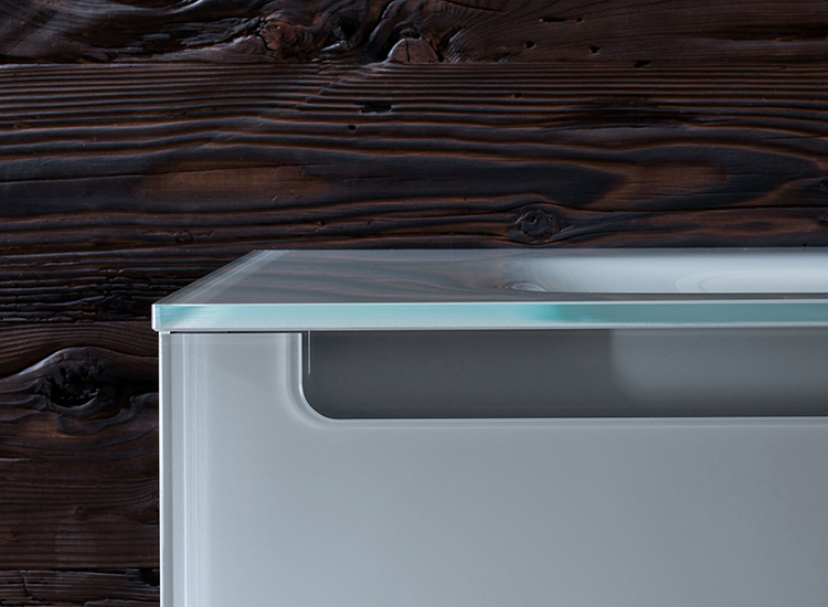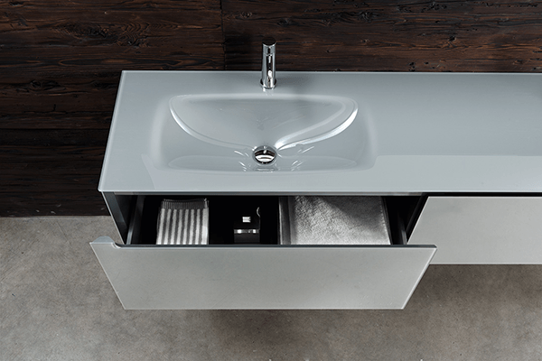 The Metrica designed Falper Edge Glass Bathroom Vanity makes splendid use of its chosen material. Its structure consists of MDF, birch plywood and lacquered tempered glass. These components amalgamate to form the entirety of the Falper Edge Glass' construct. 4 mm tempered glass panels cover the external parts of the front and sides of its base cabinet, allowing the item to possess a sculptural element that complements its silhouette. A Ceramilux SSL washbasin or a built-in glass basin. Legrabox drawers with stabilization systems and built-in soft-close mechanisms are also included in this system.