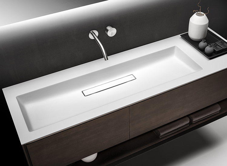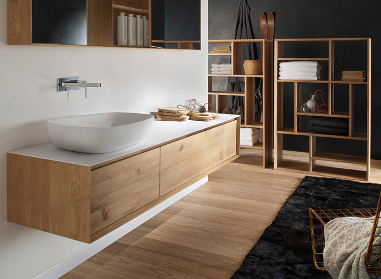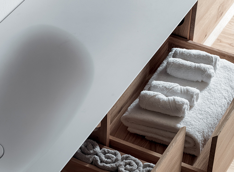 Several finishing options are available for the Falper Shape Evo Bathroom Vanity. This product makes use of these finishing options for the base of this bathroom vanity system. There are twenty-three colour options ready for your choosing: these choices apply to the base components. Wooden selections are available for all base components as well. The internal finish for the drawers and the drawer mechanisms themselves come in Falper's matte white finish, or these components can come in European solid oak. These finishing selections give Falper's Shape Evo the details needed to integrate itself into your bathroom's design scheme.