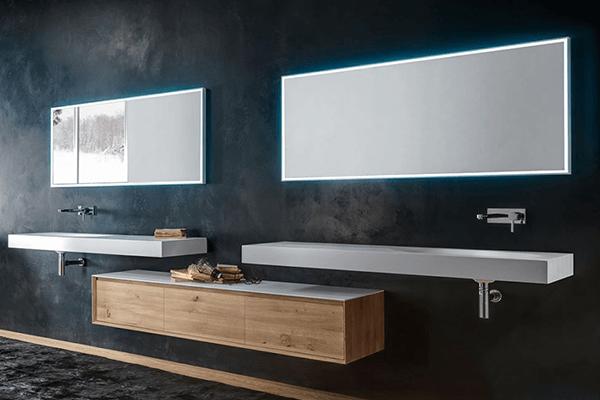 With its minimal profile, the Falper Shape Evo Bathroom Vanity relies on simple materials to bring out its exquisite profile. Its entirety consists of MDF, Idropan, and birch plywood furniture on a metallic frame. The Shape Evo utilizes Legrabox drawers with stabilization systems and a built-in soft-close mechanism. Its base cabinet can now be made of European solid oak and assembled without a frame, which allows for the climate and hygrometric natural adaptation of the material. This bathroom system manages to exist between luxury and modesty. The Falper Shape Evo represents the balance between form and function.