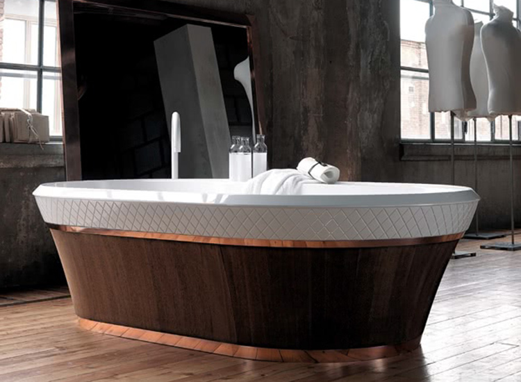Sanitarywares, like the Falper George Bathtub, uses several materials to complete its final form. From wood veneers, metal embellishments, to leather selections, the George makes use of these elements to provide you with a highly refined product worthy of your approval. The tub component is composed of glossy or matte Ceramilux. You may then select from matte painted finishes, wood veneers, or leather options for the product's entirety. Your choice of metal ornamentation gives detail to its base and signifies the separation of the washbasin to the body of the George Bathtub.
