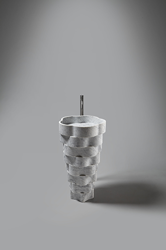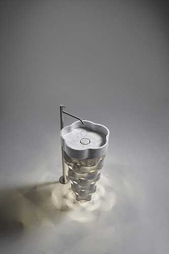 Recently Intreccio was also added to the ADI selection. It is an ultra-light marble sink, which weighs only 55 kilograms. To create this piece, overlapping concentric rings were carved out of an 11-centimeter block of marble and staggered to form a three-dimensional object. Marble cuts were optimized in order to reduce material waste in making this product.