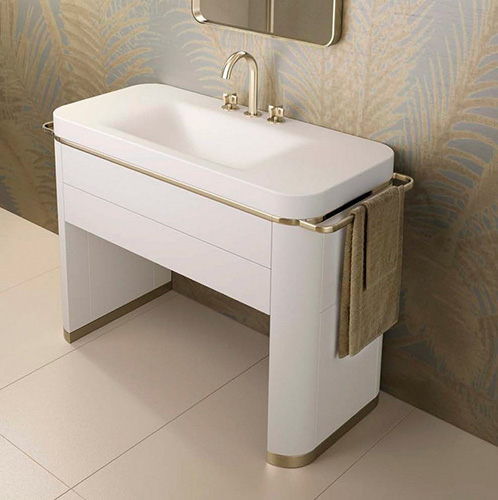 The washbasin from the Baia collection can combine with different models of faucets creating a wide array of solutions. The taps in the collection are classically-inspired and are designed for built-in sinks, bidets, showers, and bathtubs: a total look with attention to the smallest details. Classic style merges with modern technology thanks to an innovative thermostatic technology with which the bath and shower faucets are equipped.