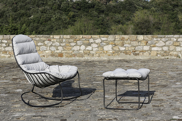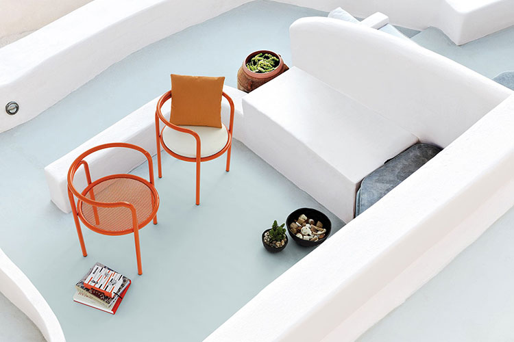 Folia, for example, is a collection of outdoor seating, handcrafted in stainless steel. The structure is light and the shape is ergonomic, ideal to welcome the body in moments of relaxation. Available in white, anthracite, bronze and a range of pastel colours.