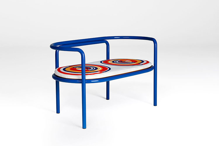Roll, the family of seats characterized by ironic cushions held together to the backrest by coloured bands, removable to allow the cushions to be stored during winter. Both products have been expanded with a whole family of outdoor furniture.