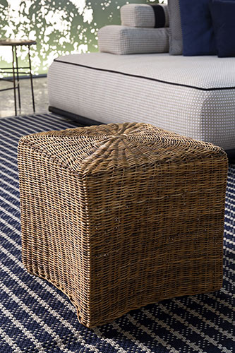 Exteta is a high-end outdoor furniture brand, which also offers in its catalogue proposals of high craftsmanship. Like the new Pouf Rossiccio signed by Massimo Castagna, art director of the brand. A complement that finds its ideal context alongside elegant upholstered furniture such as the Panarea collection made up of sofas, islands and dormeuse. A luxury collection composed of a mahogany structure with Barrique finish on which the large cushions rest. The latter are upholstered with fine fabrics, precious finishes and meticulous leather inserts.