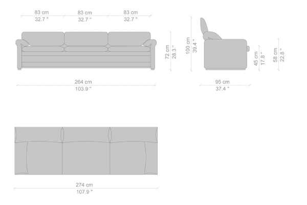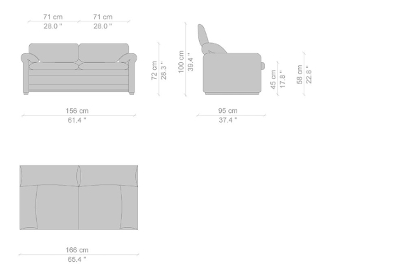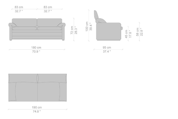 Maralunga and Maralunga 40 offer sofas with different widths ranging from 166 cm to 190 cm for the two-seater option and from 238 cm to 274 cm for the three-seater version.