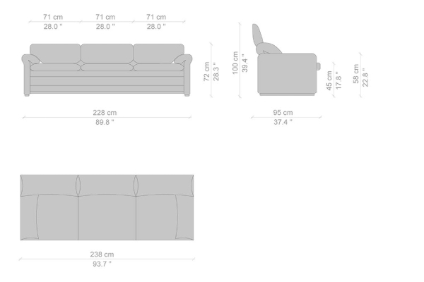 Both sofas, however, continue to maintain the adjustable height head rest variation thanks to the simple bicycle chain, the innovative element introduced back in 1974. New sizes have also been designed for the two-seater (214 cm) and three-seater (310 cm) sofas, increasing not only the width but also the depth (105 cm) for greater comfort.