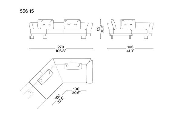 The Cassina Sengu Sofa is a seating implement that can accommodate any space without difficulty. Linear and modular options are available for this seating implement, making it an exemplary sofa system that will fit into any design scheme. The smallest version of the Sengu measures 105x230x82 cm, while the largest variant within the linear system measures 105x270x82 cm. The modular versions of this sofa system come in different layouts, components, and measurements: information on these products will depend on your chosen configuration and will be available upon request.