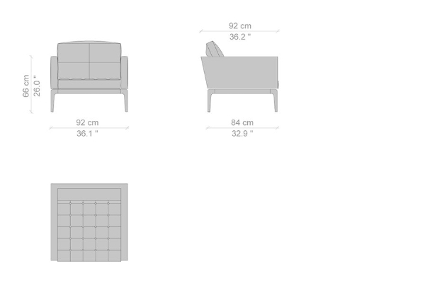 The capitonné upholstery of the cushions alone merits conversations about its elegance and craftsmanship. The attention to detail that went into this facet is deserving of anyone's praise. Numerous leather and fabric options contribute to the Cassina Volage's air; it can be made playful or stately depending on your selection. The polished aluminium frame adds the needed modernity to this lovely piece of furniture. Its metallic nature permits the distinction between the two components, successfully pronouncing the beauty of each part. The unity between the pieces only serves to dignify the entirety of the Volage.