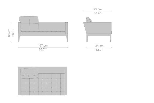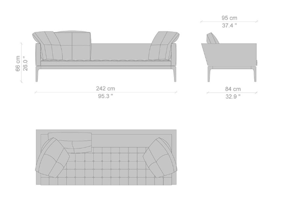 The Cassina Volage Sofa is part of a collection designed by Philippe Starck that embodies the point in which comfort, style, and industrial innovation meet. The collection includes a bed, ottoman, and a padded coffee table, all of which share the same aluminium frame and capitonné upholstery. The Volage can fit in any living room setting as its modular nature allows it to fit into any design plan. The base model for this series measures 93x227x74 cm, and with several other sizes and modules to choose from, you are sure to configure a sofa system that is following your tastes.