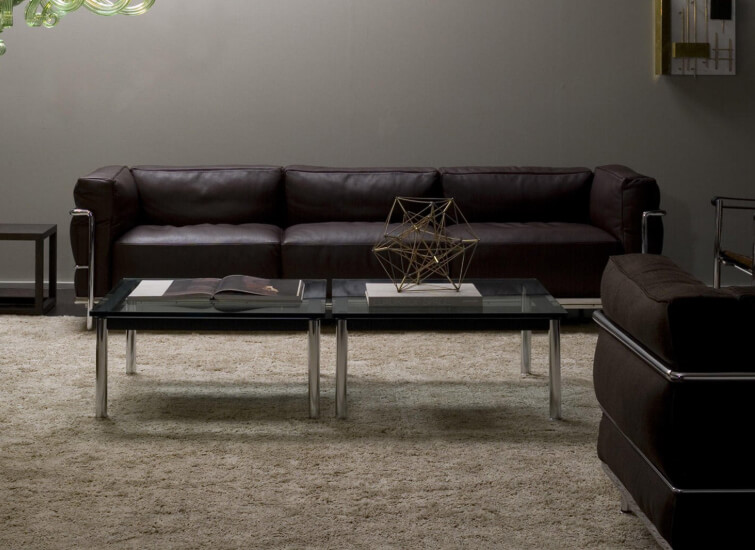 The LC3 sofa remains unchanged to this day as its design and actual production have achieved perfection. The only change from its predecessor, the LC2 is the number of cushions from the LC2's five cushions to four cushions for the LC3. Its cushions, comprised of a polyurethane core wrapped with polyurethane foam and polyester padding or padding in feather, are held in place by a polished, trivalent steel frame, allowing the loose cushions to combine and form the seating component of the furniture piece. These details make the Cassina LC3 a reasonable solution for your living room furniture needs.
