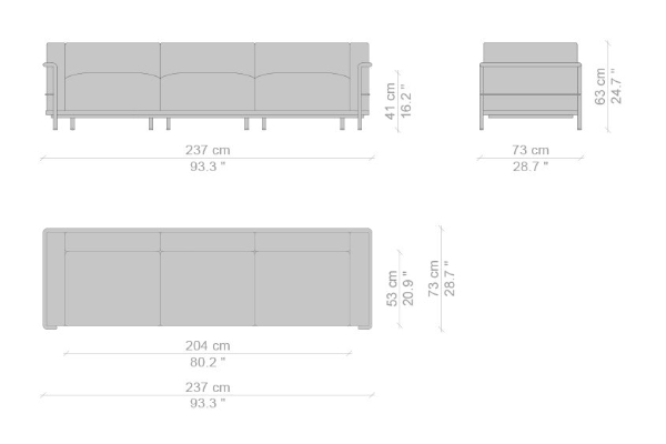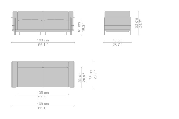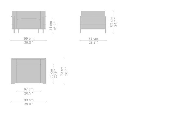 The Cassina LC3 collection has several products with different sizes that can inhabit any space that needs a beautiful seating component. The two-seater sofa measures 168x73x63 cm while the three-seater measures 237x73x63cm. This line also consists of two armchairs. The Poltrona measures 99x73x63 cm and the Meridienne measures 99x73x63 cm and has a single armrest either to the left or to the right of the seat. Ideally, you can populate your living room with all the products in the LC3 line, but you may also choose to utilize any of the products individually.
