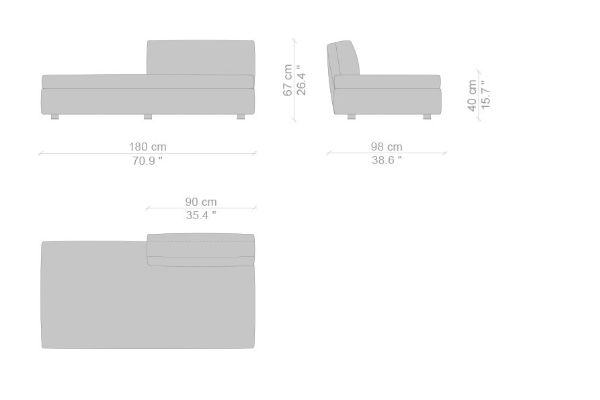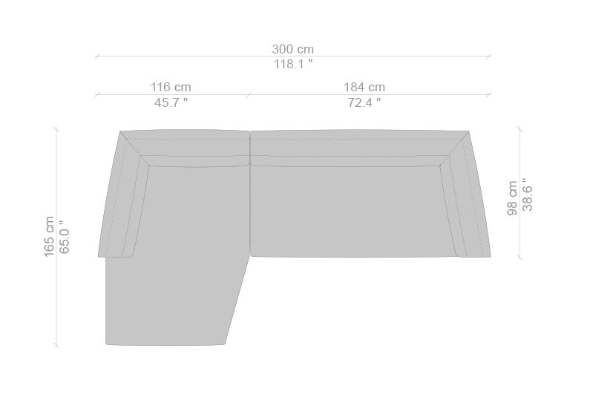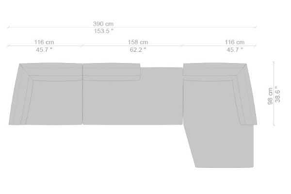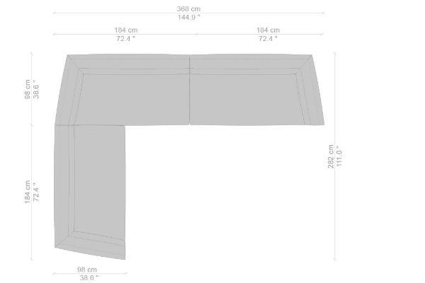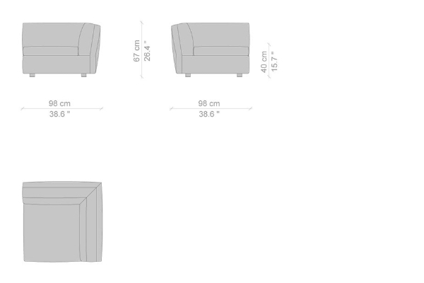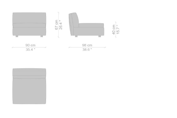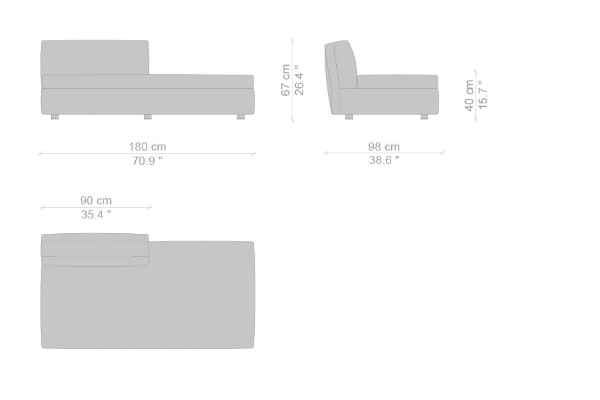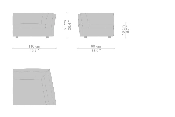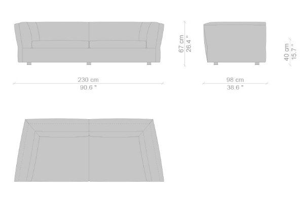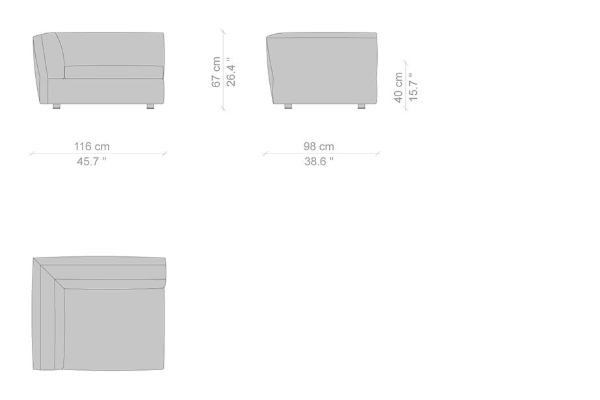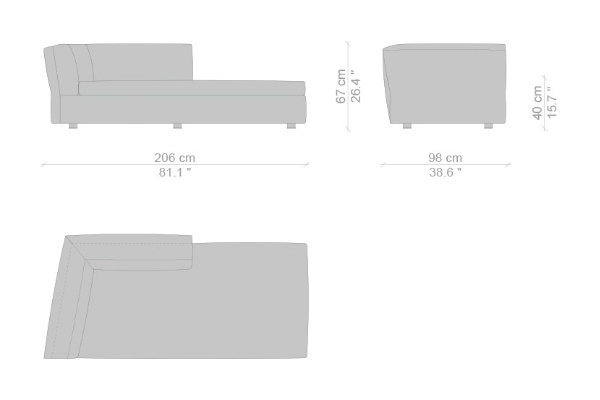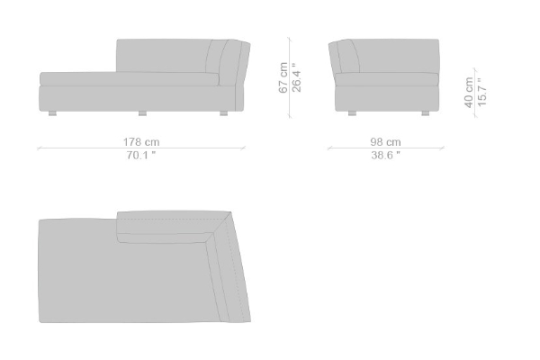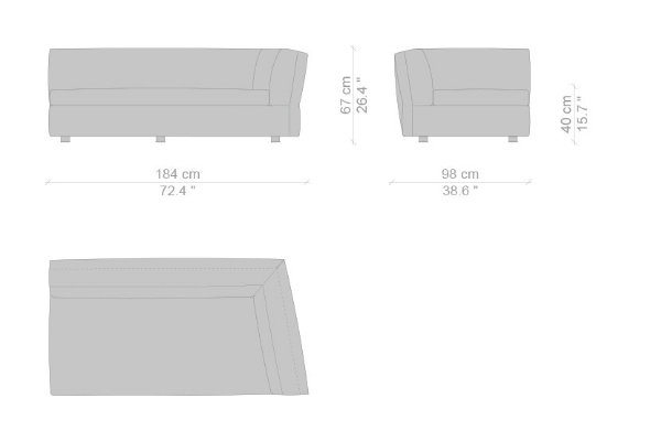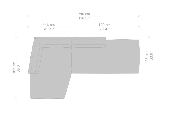 The Cassina Dress-Up Sofa is modular to an extent. The smallest base model with the open-tilt backrest/armrest measures 230x98x67. The model with parallel armrests and a seat depth of 116 cm measures 290x116x67 cm. There are sectional types as well. The base, two-part sectional sofa measures 165x300x67 cm with a seat depth of 98 cm while the biggest four-part sectional sofa comes in at 372x282x67 cm with a seat depth of 98 cm. These sectional types can be mixed and matched to form a sofa system that can accommodate your needs.