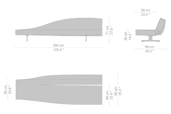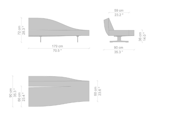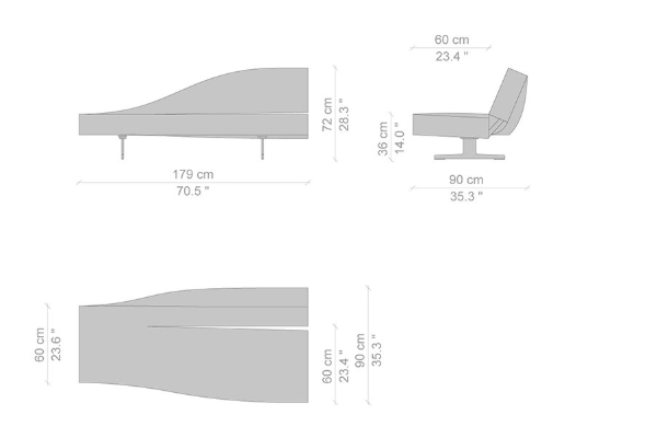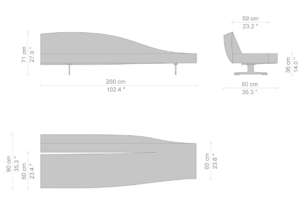 Cassina's Aspen Sofa effortlessly inhabits any environment with its uncomplicated style. It comes in two measurements which allow it to situate itself into any setting without difficulty. The small version of the Aspen comes in at 90x180x72 cm, while the large variant measures 90x260x72 cm. These measurements apply for both the left and right oriented versions of this sofa system. You may also combine both orientations of the sofa system measuring 90x180x72 cm to form its largest variation with a centralized backrest, should you require a larger model of Cassina's Aspen.