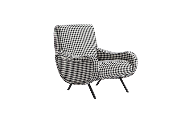 The second option that we propose among the Cassina armchairs compositions is the elegant Lady armchair, designed by Marco Zanuso in 1951. The soft shapes of the upholstered furniture, covered with a cream-colored fabric, seem almost suspended in the air, thanks to thin brass legs. The choice of these finishes places the armchair at a total price of 3.240 Euro