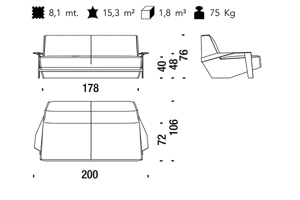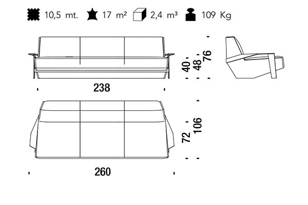 The Moroso Silver Lake Sofa comes in three variations with corresponding sizes. The sofa 200 measures 106x200x76 cm. The sofa 230 measures 106x230x76 cm. The sofa 260 measures 106x260x76 cm. These available dimensions ensure that the Moroso Silver Lake will be able to occupy any space in your home that requires a superb sofa system. There are also other items in this collection in the form of a settee, an armchair with three sizes and a pouf. Additional cushioning is also available for the sofa's armrests.