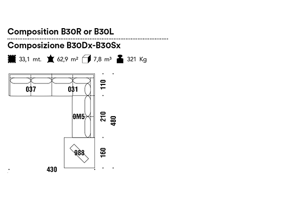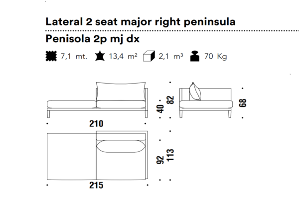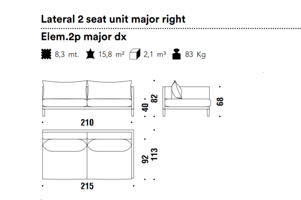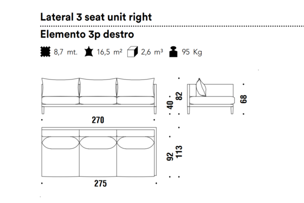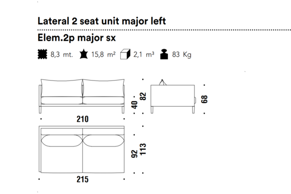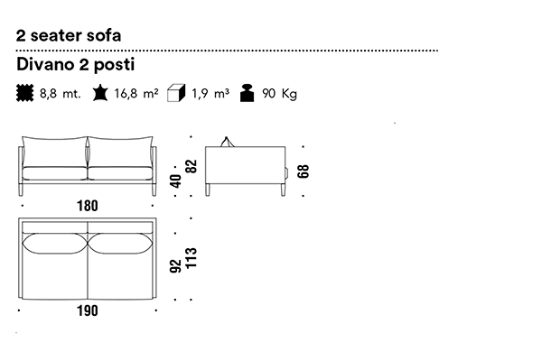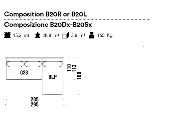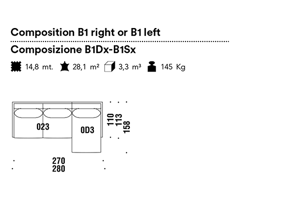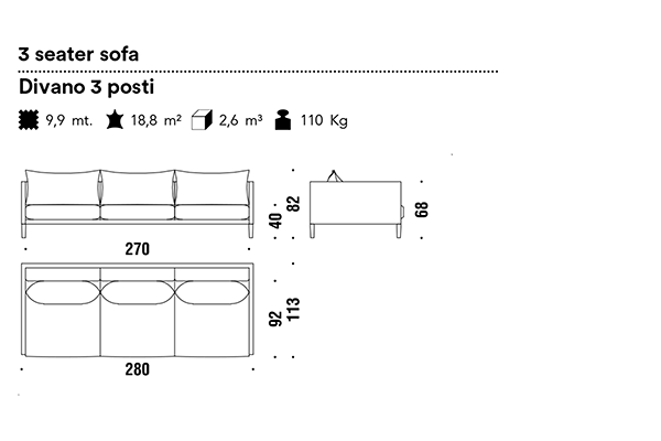 Three sizes are available for the linear version of the Moroso Josh Sofa: 113x190x82 cm, 113x220x82 cm, and 113x280x82 cm. These dimensions are applicable for regular-sized living rooms. The Josh can also occupy larger areas such as hotel lobbies or waiting areas of international offices, thanks to its modular versions. The measurements for the modular versions will depend on your selected components: in this regard, the information required for your configuration will be available upon request. You may also opt for a pouf in the same line, measuring 105x105x40 cm or 130x130x40 cm.