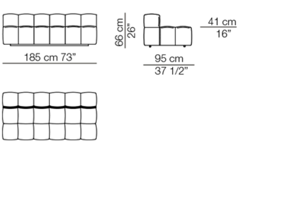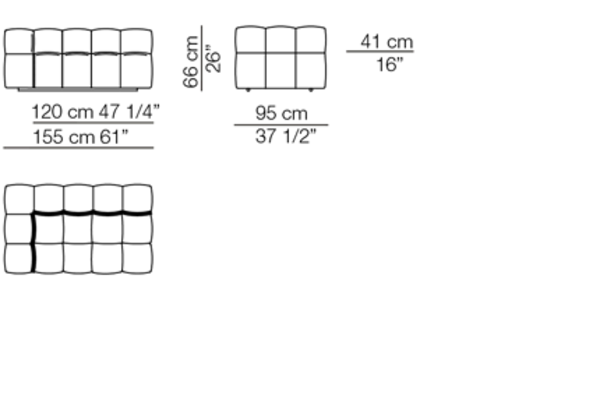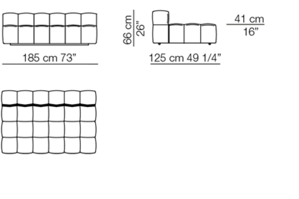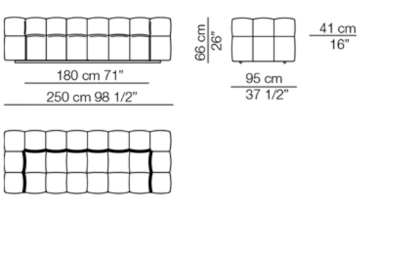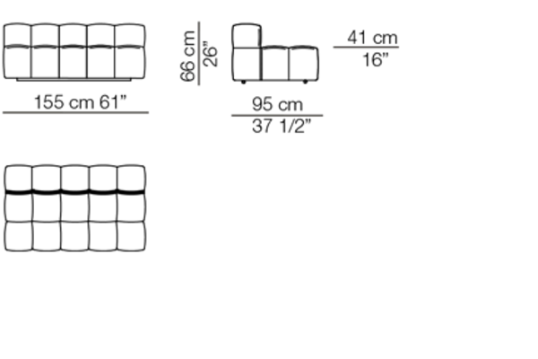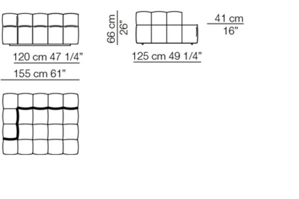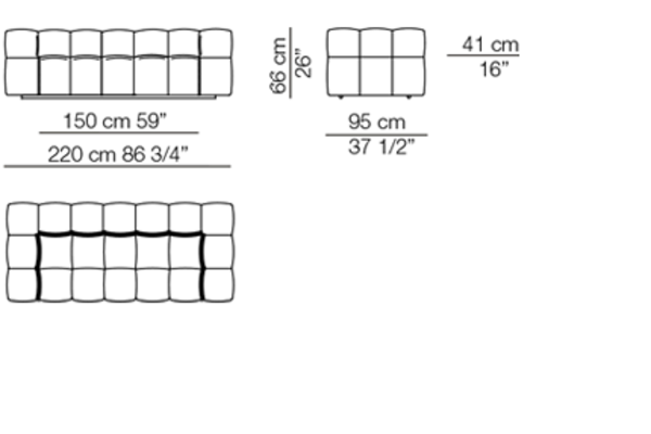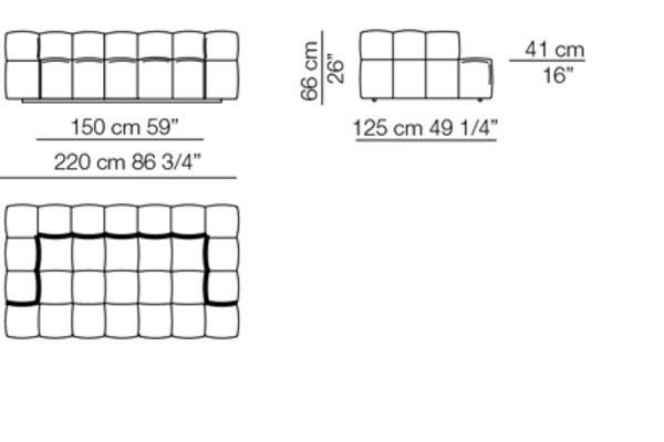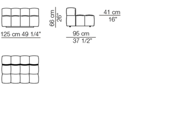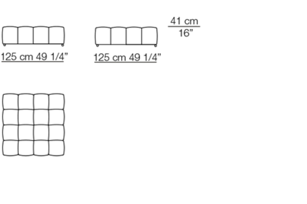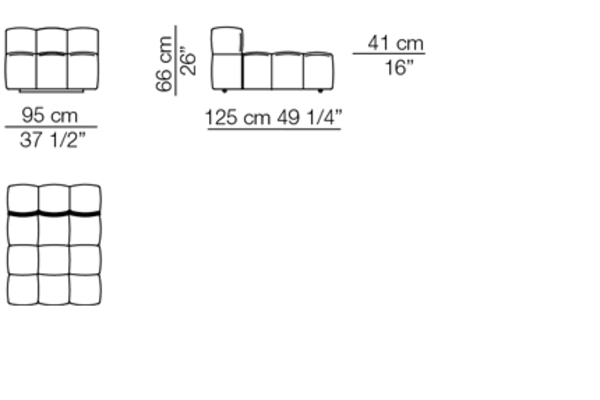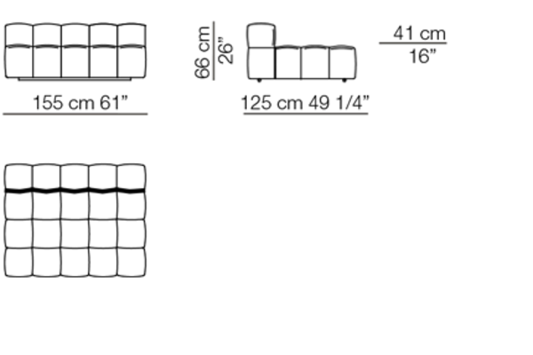 The modular configurations available to the Strips sofa are numerous as you can personalize the Arflex Strips according to your taste. The basic model’s measurements are 220x125x66 cm, but your modular choices can create a version of the Strips sofa that is uniquely yours. In a sense, the Strips sofa system components are like building blocks, the assembly options are endless. The synergy between elements is the best feature of this product, it’s up to you to make everything come together.