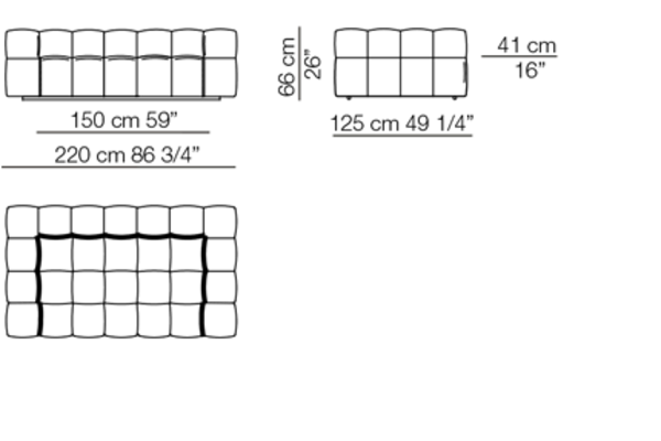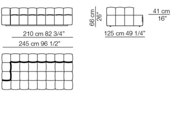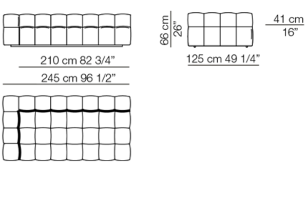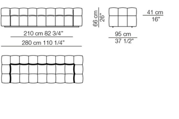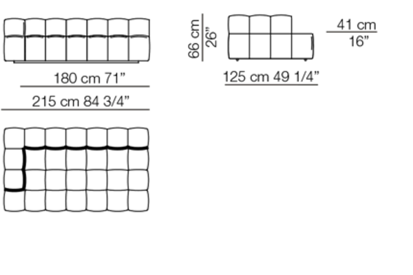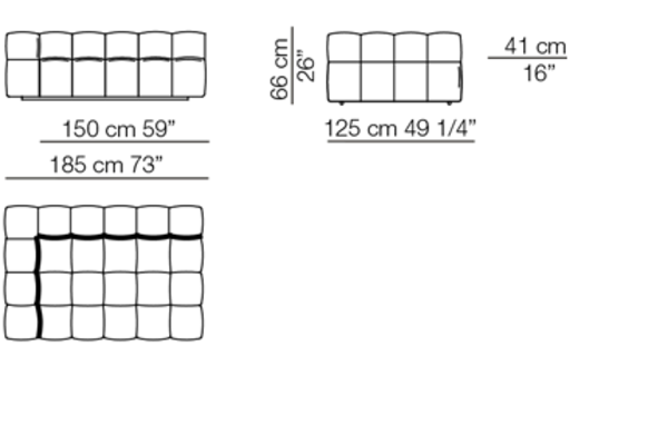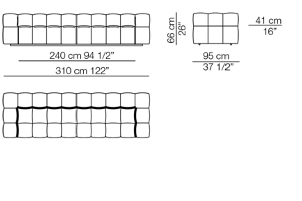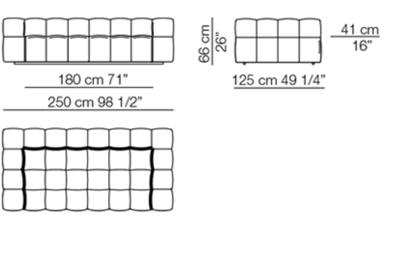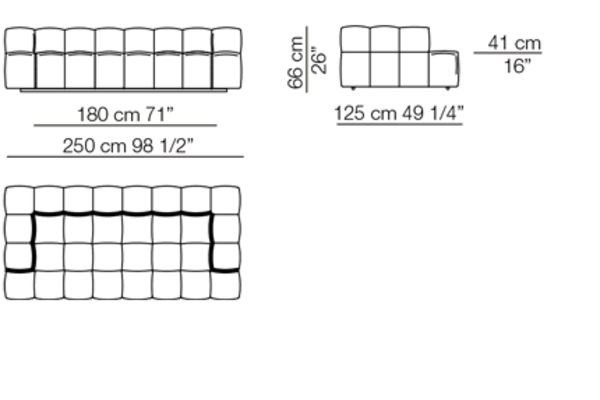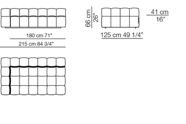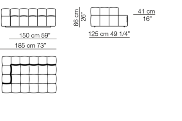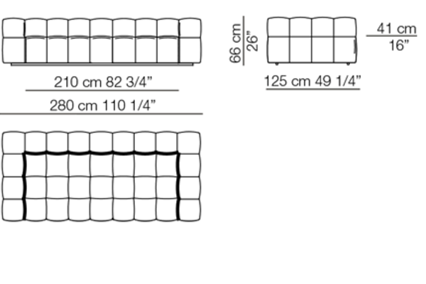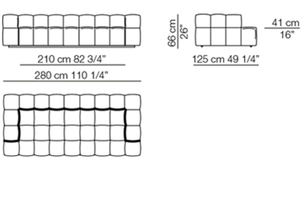 The modular configurations available to the Strips sofa are numerous as you can personalize the Arflex Strips according to your taste. The basic model’s measurements are 220x125x66 cm, but your modular choices can create a version of the Strips sofa that is uniquely yours. In a sense, the Strips sofa system components are like building blocks, the assembly options are endless. The synergy between elements is the best feature of this product, it’s up to you to make everything come together.