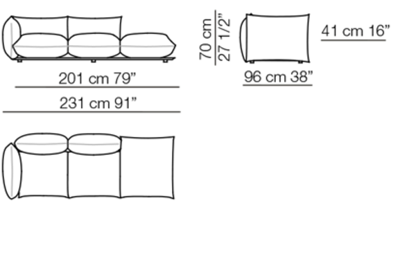 Each element of the Arflex Marenco sofa is padded and covered to produce the reality of softness and comfort contained in this seating system. The base is made of multi-plywood with fiber cover and the backrests and armrests are painted tubular metal. The padding consists of various densities of polyurethane foam and fiber cover. All Arflex Marenco covers are fully removable.