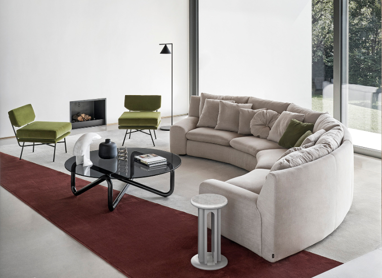 Modularity is also one of the significant features of the Ben Ben. Arflex's designs make sure that their commodities are adaptable regardless of space constraints. The base model of the Ben Ben measures in at 335x100x77 cm and is essentially a two-seater, but depending on your modular requirements, the size of your sofa can increase accordingly. Its curved shape resembles a small arch but could go all the way to a full circle if deemed necessary. The seating capacity will also vary depending on the number of modules you may want to combine.