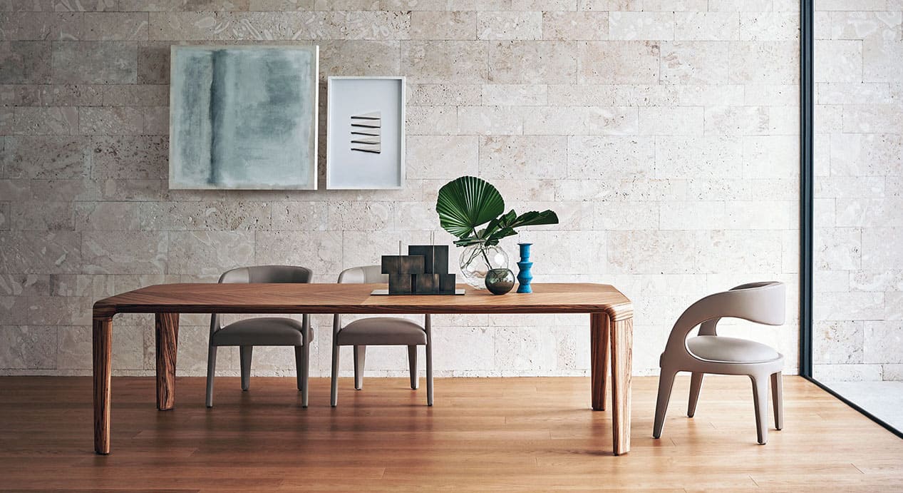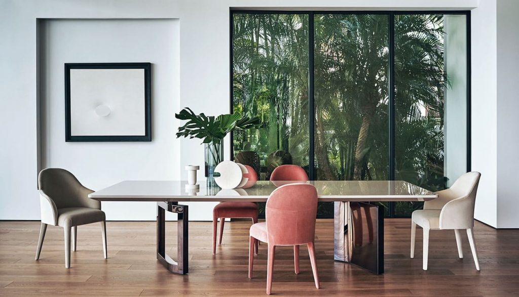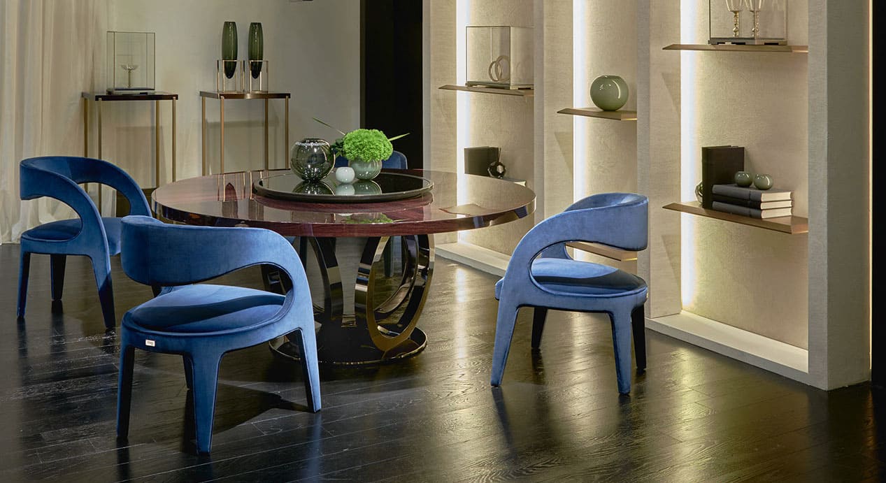 Our design experts have selected an array of images and ambiences showcasing Italian designer dining room furniture to feed your inspiration, whether you’re a home interior enthusiast or interior design professional. If you’re looking for something in particular, don’t hesitate to contact us. We’re here to encourage you along the path of Italian design. You’ll find your dream dining room before too long. Perhaps you’re searching for a classic dining atmosphere, a contemporary dining vibe, or maybe even a mix of different styles. We want to help design a space for you with timeless taste. Look around and let us know what you like. Italian designer dining room furniture will welcome and entertain your guests, comfort and fascinate your family. What’s not to love?
